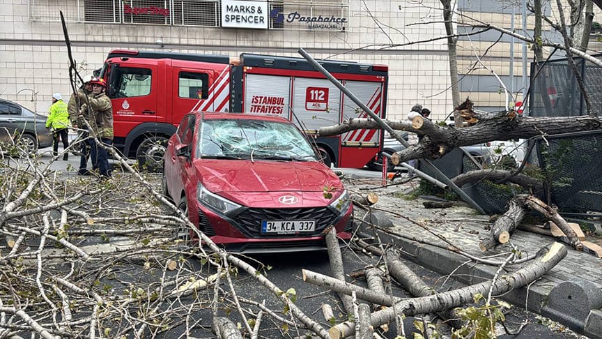 Meteoroloji Genel Müdürlüğü’nün uyarılarının ardından şiddetini artıran kuvvetli rüzgar, Şişli Esentepe Mahallesi Harman-1 Sokak’ta bir ağacın park halindeki otomobile devrilmesine sebep oldu. İtfaiye ekiplerinin müdahalesiyle ağaç kaldırıldı ancak araçta büyük hasar oluştu.