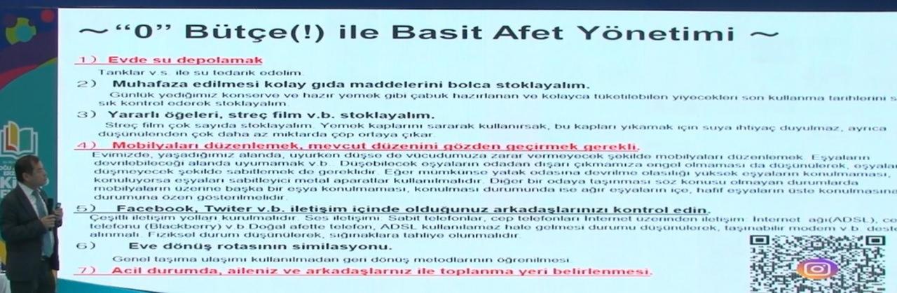 Konuşmasında tavsiyelerde de bulunan Moriwaki, yaşam üçgeninin önemini anlatarak merdivenlerin kullanılmamasını söyledi. Normal yerlere göre merdivenlerin dengesiz olduğunu belirten Moriwaki, “Bazen depremde sadece merdiven çöküyor ya da merdivenden çökme başlıyor. 2020’de İzmir’de deprem olduğunda merdivenden başlayan ve sadece merdivenin çöktüğü bina var. Hatay ve Maraş’taki depremde en fazla zarar gören merdivendi. Onun için merdivenden kaçmamak lazım. Yaşam üçgeni daha iyi diye söyleyebilirim.” dedi.