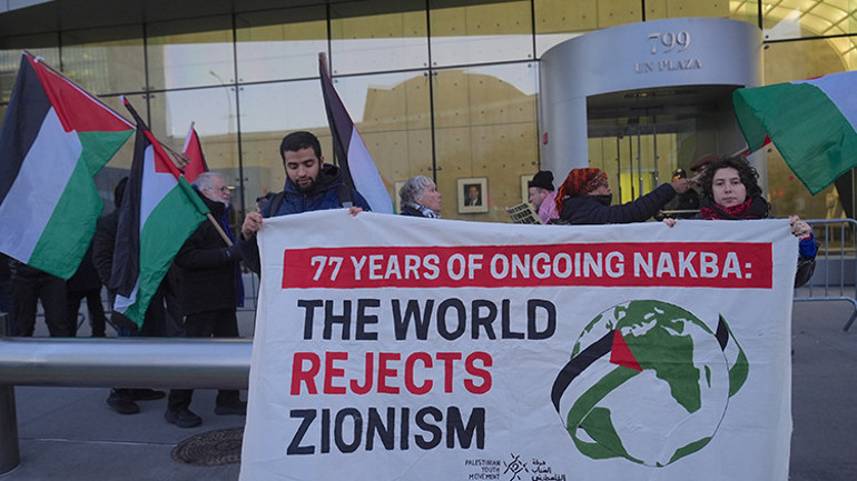 İnsan hakları savunucuları, BMGK’nin New York’taki Birleşmiş Milletler Genel Merkezi ile ABD’nin BM Daimi Temsilciliği önünde bir araya gelerek, Gazze’de Barış Kurulu’nun kurulması ve Uluslararası İstikrar Gücü’nün görev yapmasını öngören ABD tasarısının onaylanmasını protesto etmişti.