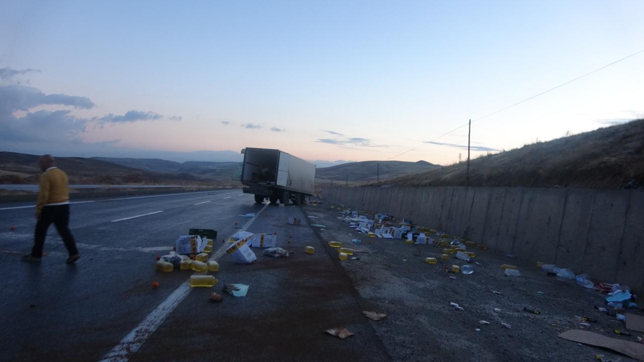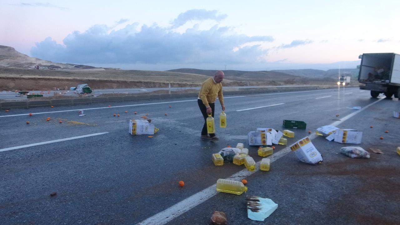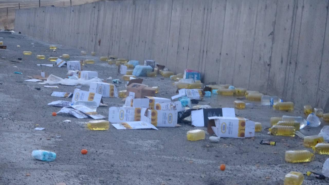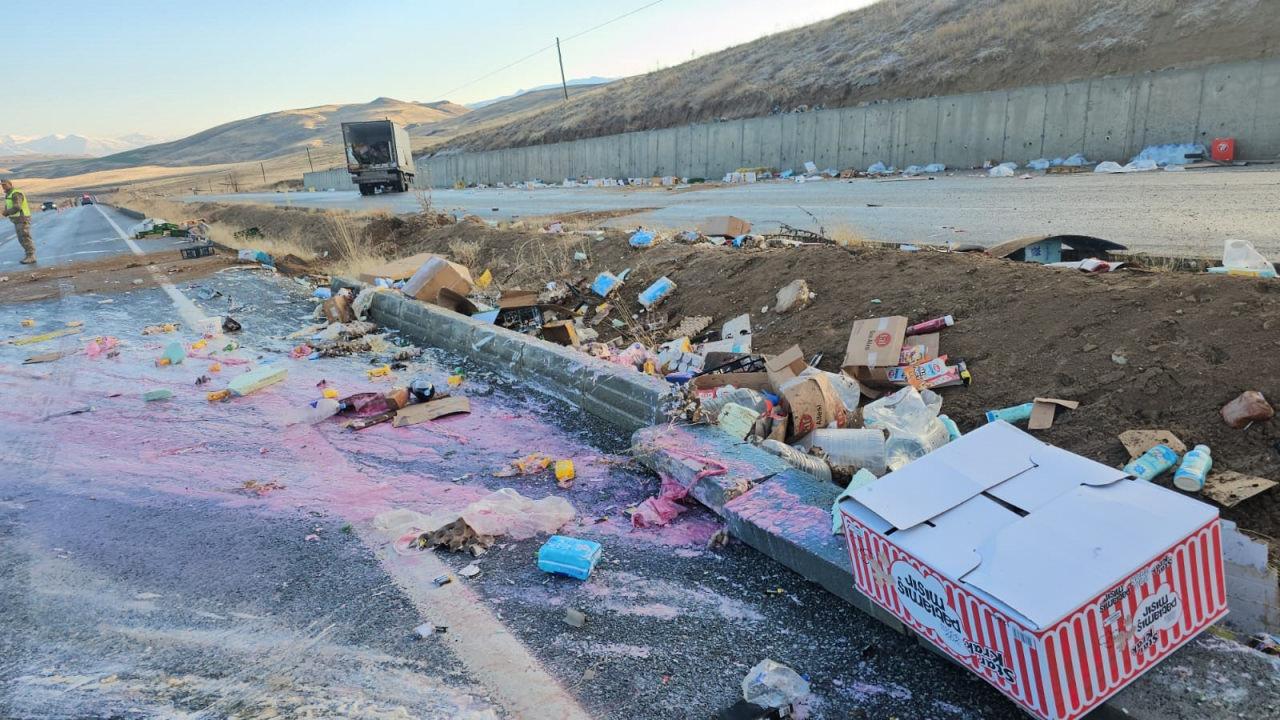 Tırların taşıdığı gıdalar yola savrulurken, kazaya ilişkin soruşturma başlatıldı.